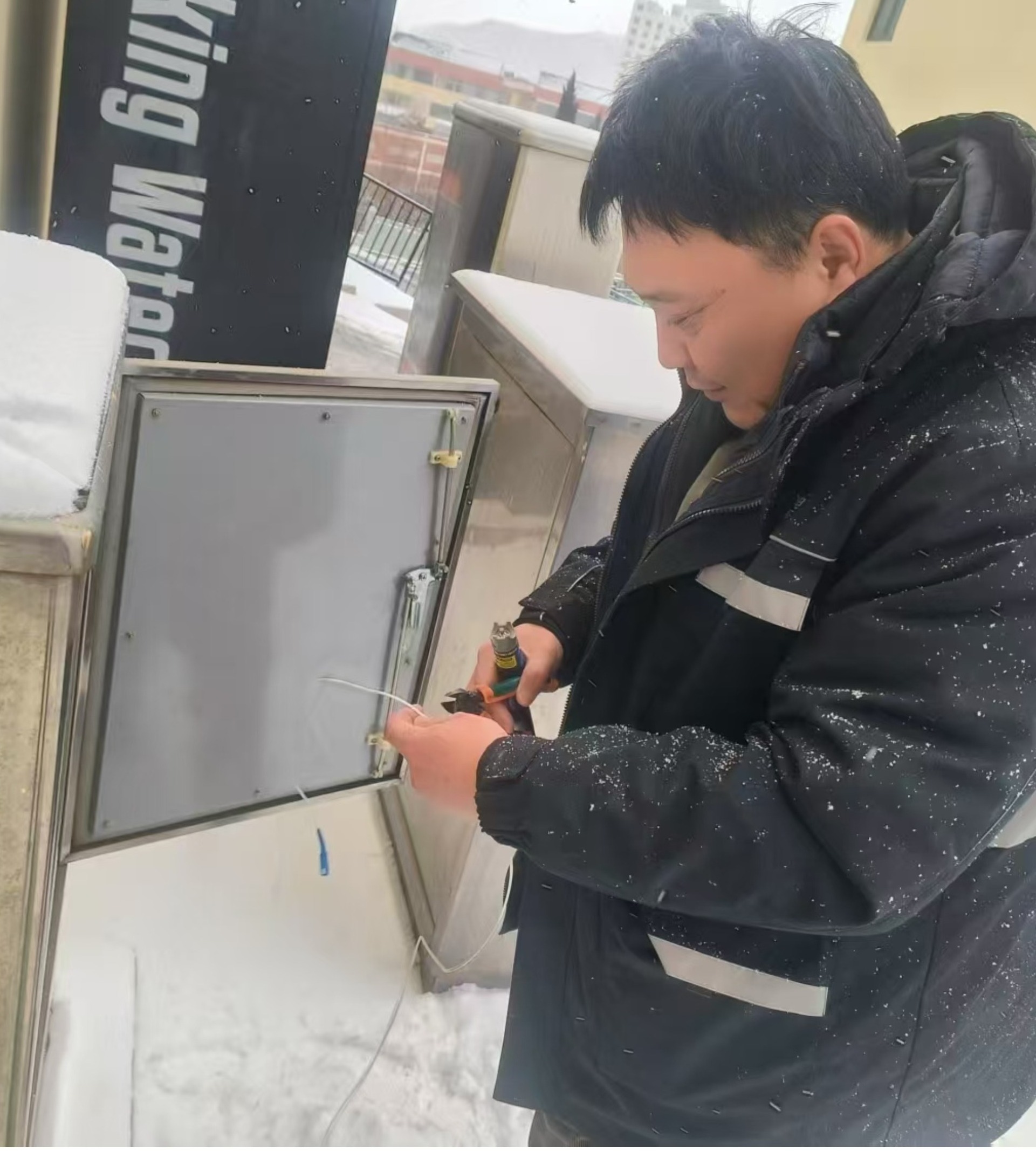 寒潮來襲,日照莒縣分公司始終堅持客戶至上的服務理念,客戶經(jīng)理接到報修電話,第一時間趕到現(xiàn)場,進行故障排查、信號恢復,保障客戶收視與上網(wǎng)體驗。圖為莒縣分公司直屬營業(yè)部客戶經(jīng)理王寶昊在桃園北區(qū)處理信號故障。
